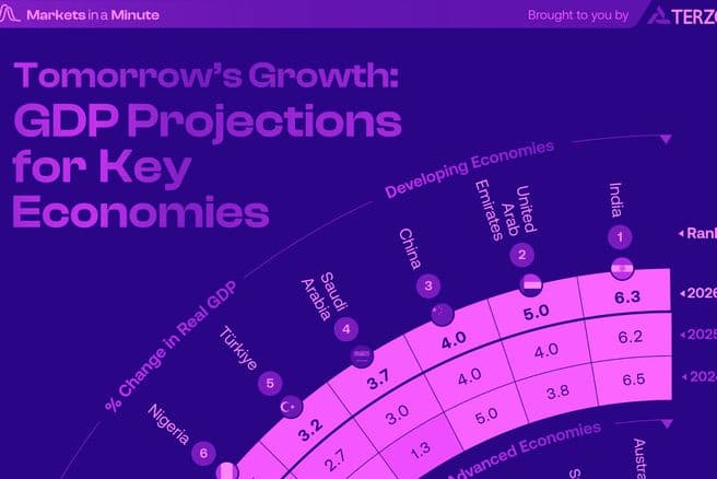 Terzo has partnered with Visual Capitalist to deliver a new infographic: “Tomorrow’s Growth: GDP Projections for Key Economies.” This visualization maps out expected GDP changes across growing and other major global economies, offering a window into how economic power may shift over the coming years.
