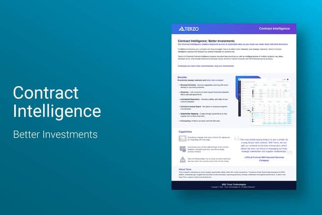 Confidence is knowing your contracts are being managed. Focus on what’s most important; your strategic objectives. Terzo’s Contract Intelligence captures and extracts key contract metadata for practical use.