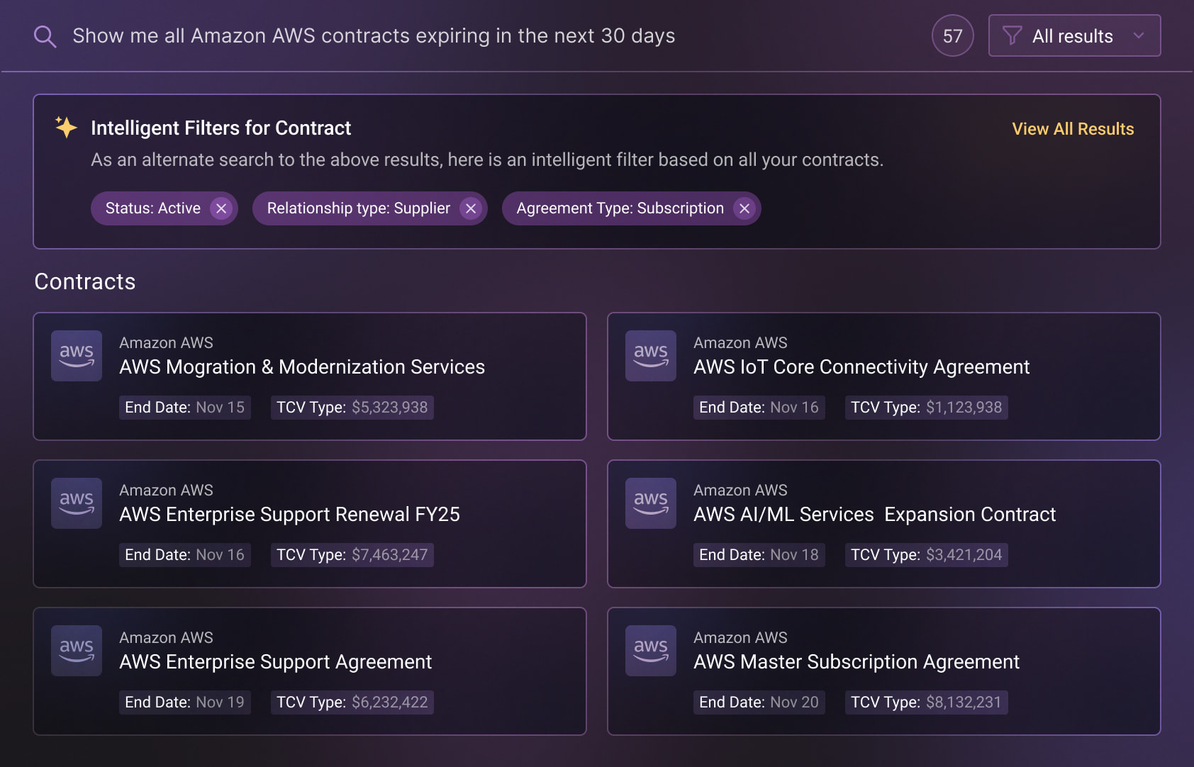 One AI system for revenue, spend & contracts. Instant intelligent answers.