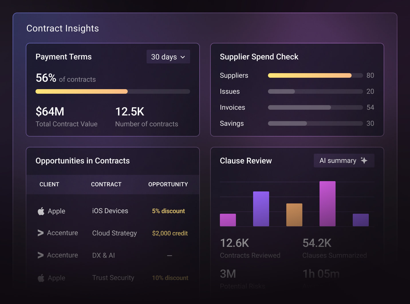 AI dashboards built for clear, contract-driven decisions.